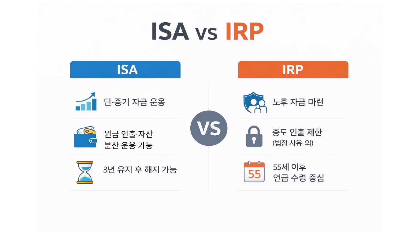 👉 IRP는 노후 준비, ISA는 투자와 자산 운용이다.